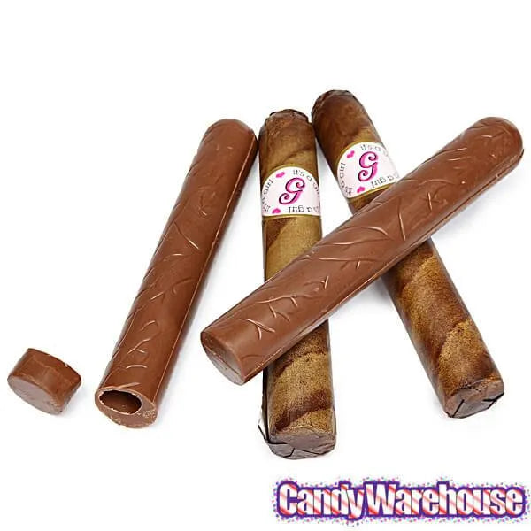 Each semi-solid milk chocolate cigar is approximately 5.5 inches long with a diameter of 1 inch.