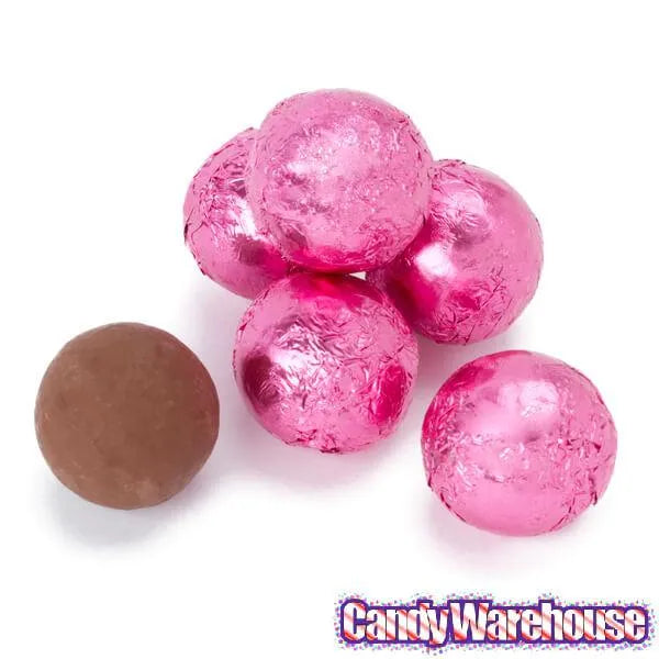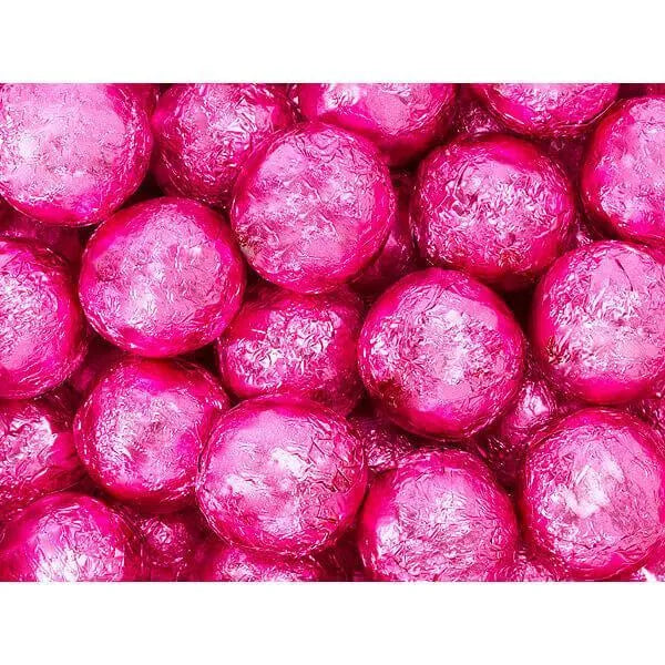 Bag contains 5 pounds of Pink Foiled Milk Chocolate Balls Candy.