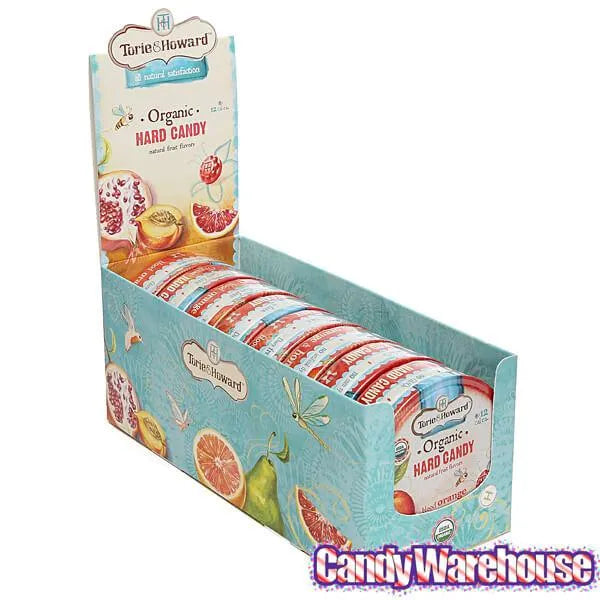 Display box contains 8 Blood Orange & Honey Torie and Howard Hard Candy Tins, each with a net weight of 2 ounces.