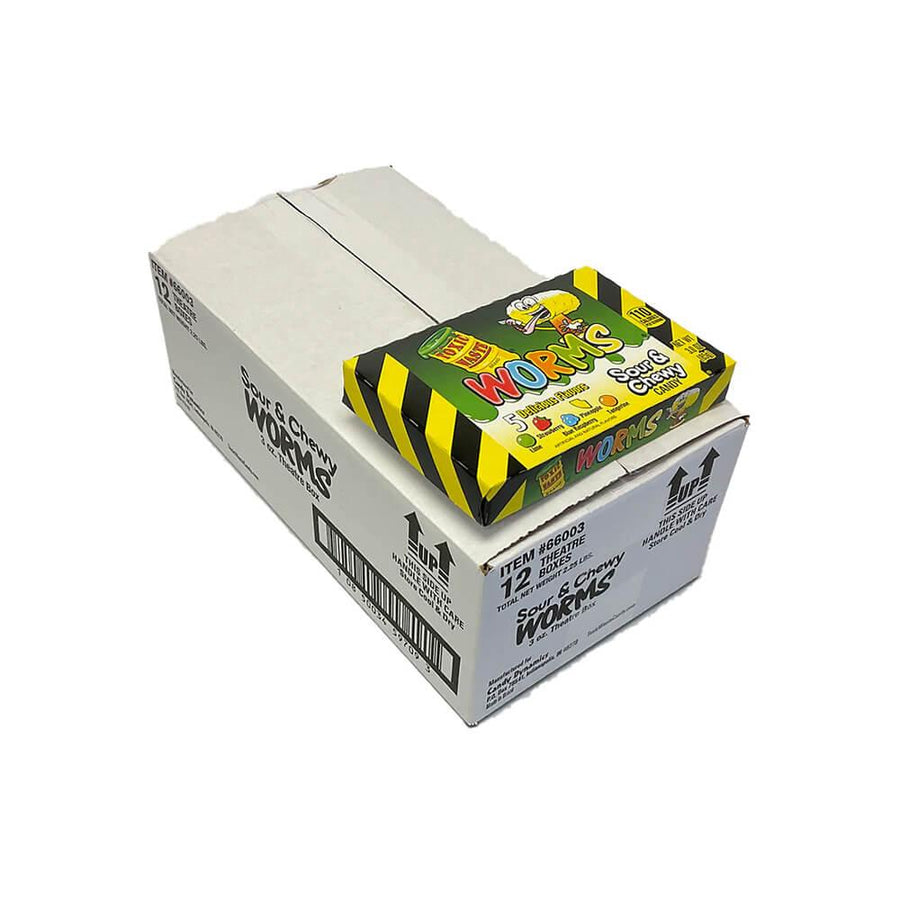 Box includes 12 Toxic Waste Sour Smog Balls Theater Packs each weighing 3.5 ounces.