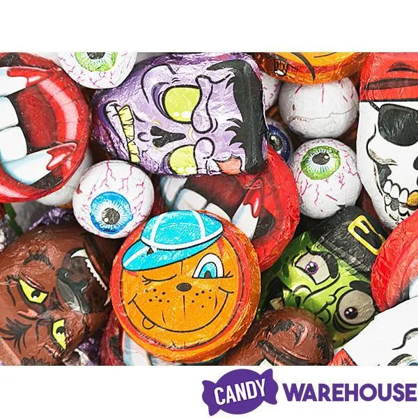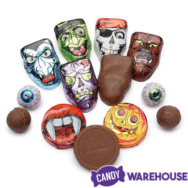 A spooky assortment of Halloween candy, this unique selection of wrapped chocolates includes several scary designs, including, chocolate eyeballs, monster heads, candy fangs, and chocolate jack-o-lantern pumpkins! Perfect for your trick-or-treat candy bowl or for Halloween party goody bags, this huge bulk candy bag offers a festive and fun variety for celebrating the season!