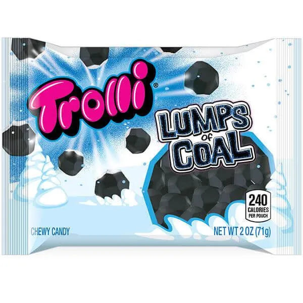 Bag contains 2 ounces of Trolli Sour Gummy Lumps of Coal Christmas Candy.