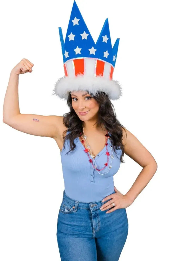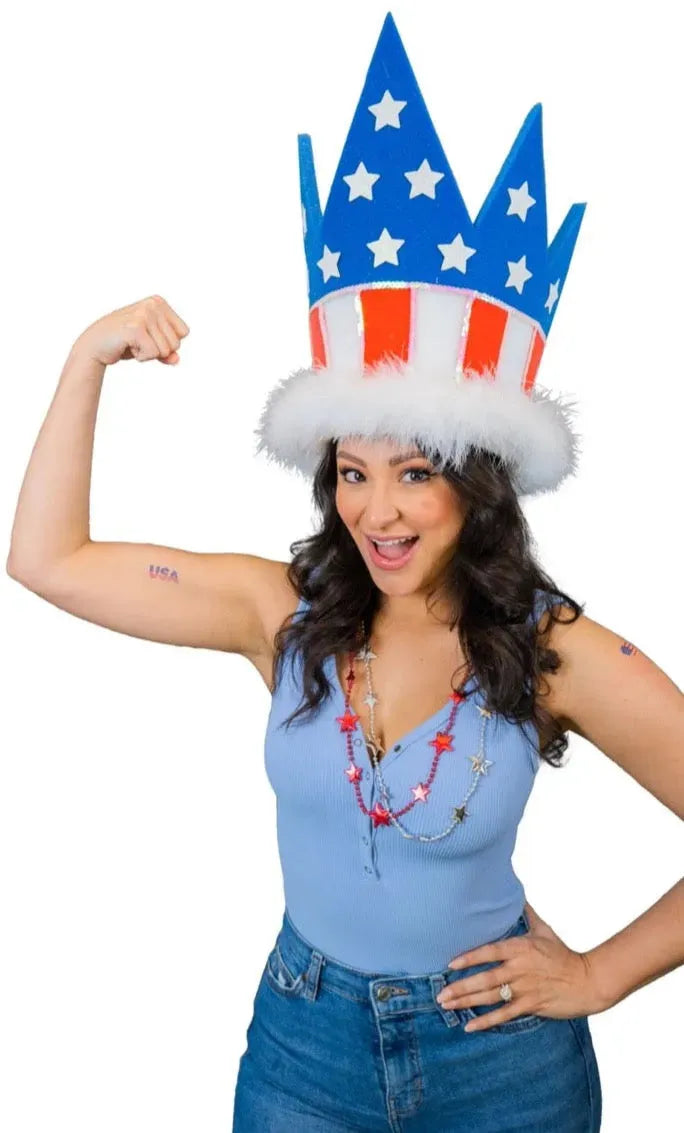 This USA Crown Hat will definitely make you stand out at your next Party, Hora Loca, Wedding, Corporate Event, Birthday, Quinceanera, or Halloween Party! It can be used as a wedding hats, top hats, photo booth props, or a party favor.