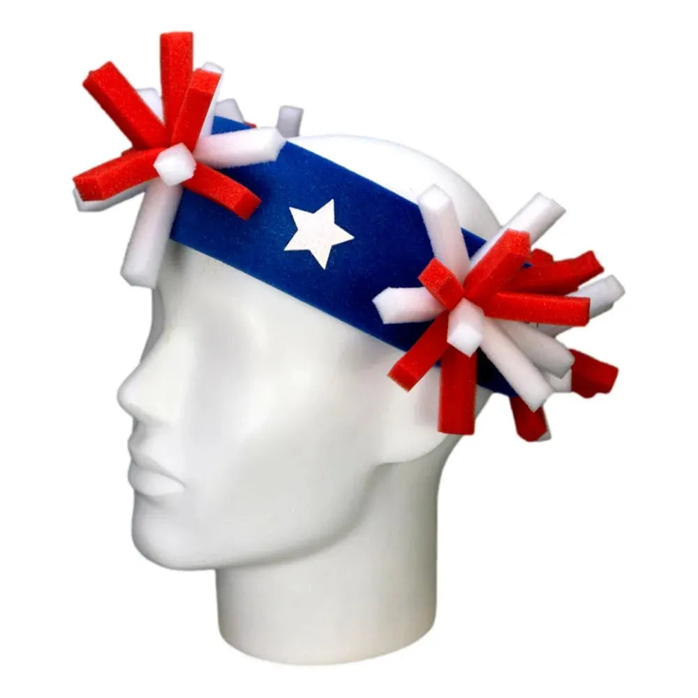 This USA Pompoms Headband will definitely make you stand out at your next Party, Hora Loca, Wedding, Corporate Event, Birthday, Quinceanera, or Halloween Party! It can be used as a wedding hats, top hats, photo booth props, or a party favor.