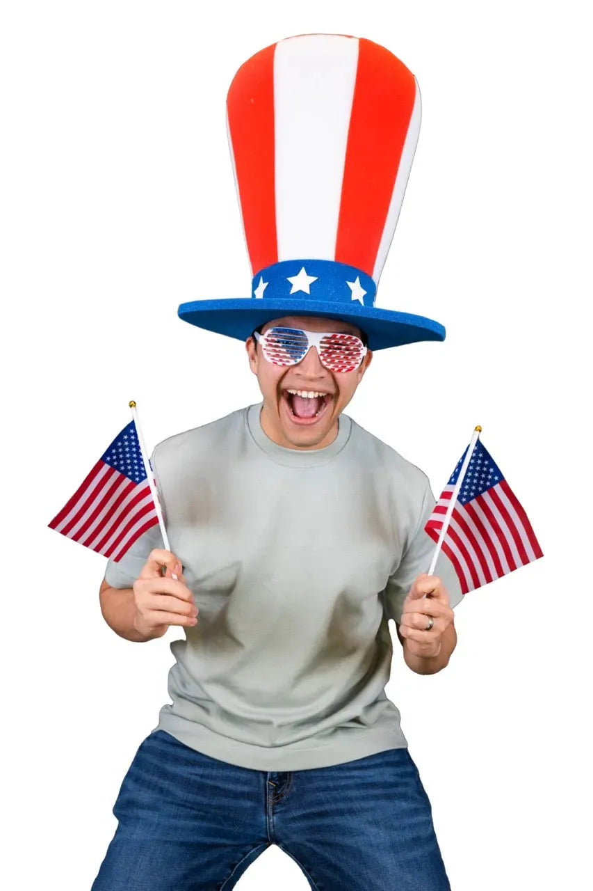 This USA Wide Top Hat will definitely make you stand out at your next Party, Hora Loca, Wedding, Corporate Event, Birthday, Quinceanera, or Halloween Party! It can be used as a wedding hats, top hats, photo booth props, or a party favor.