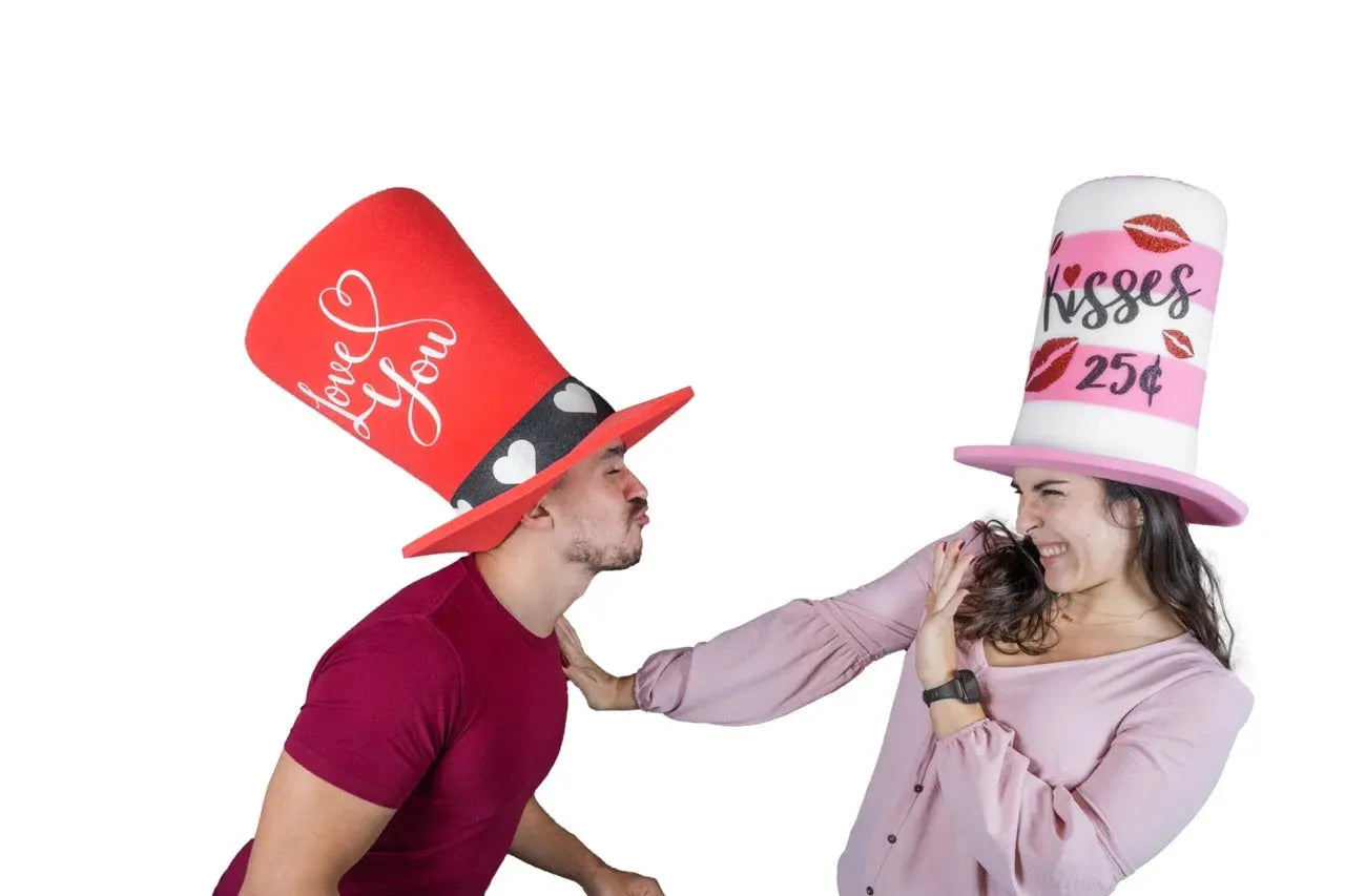 This Valentine’s Day Wide Top Hat will definitely make you stand out at your next Party, Hora Loca, Wedding, Corporate Event, Birthday, Quinceanera, or Halloween Party! It can be used as a wedding hats, top hats, photo booth props, or a party favor.