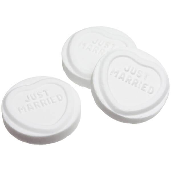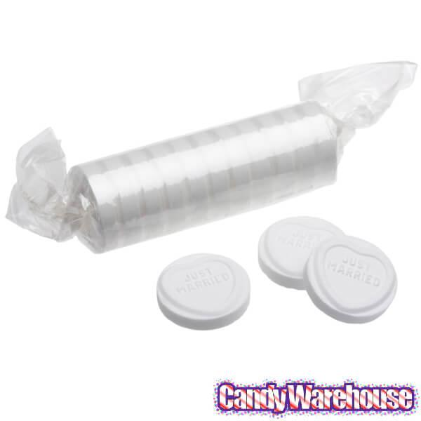 Bag contains 5 pounds of White "Just Married" Candy Rolls.