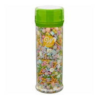 This mix includes pastel blue, yellow, green, pink and purple jimmies; pastel blue, yellow, orange, and purple Easter egg sprinkles; speckled rainbow sugar pearls; and pink, yellow, green jumbo nonpareils. Try these spring sprinkles on a batch of Easter cupcakes or use them to top homemade candy for Easter baskets. Perfect for Easter, Mother’s Day, and other spring celebrations, this sprinkles mix is sure to brighten up your festivities!