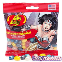 Display box contains 12 Wonder Woman Jelly Belly Superheroes Jelly Beans Bags, each with a net weight of 2.8 ounces.