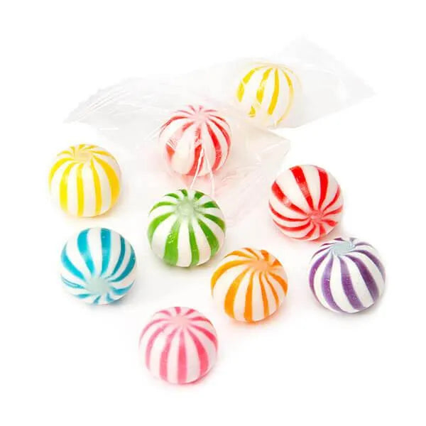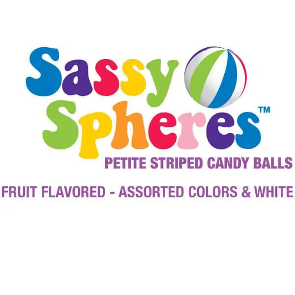 Bag contains 5 pounds of Assorted Sassy Spheres Striped Petite Candy Balls.