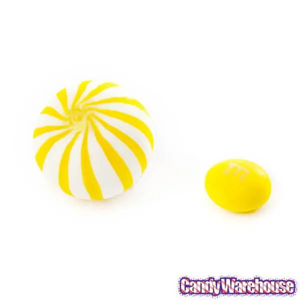 Bag contains 5 pounds of Yellow Sassy Spheres Striped Candy Balls.