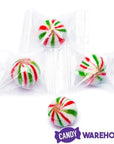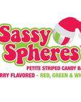 Bag contains 5 pounds of wrapped Sassy Spheres Christmas Striped Hard Candy Balls.