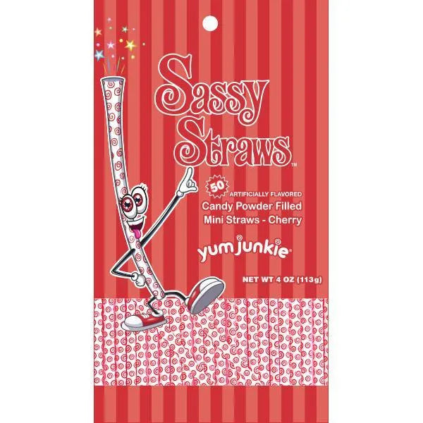 YumJunkie Sassy Straws Candy Powder Filled Mini Straws - Cherry: 50-Piece Bag